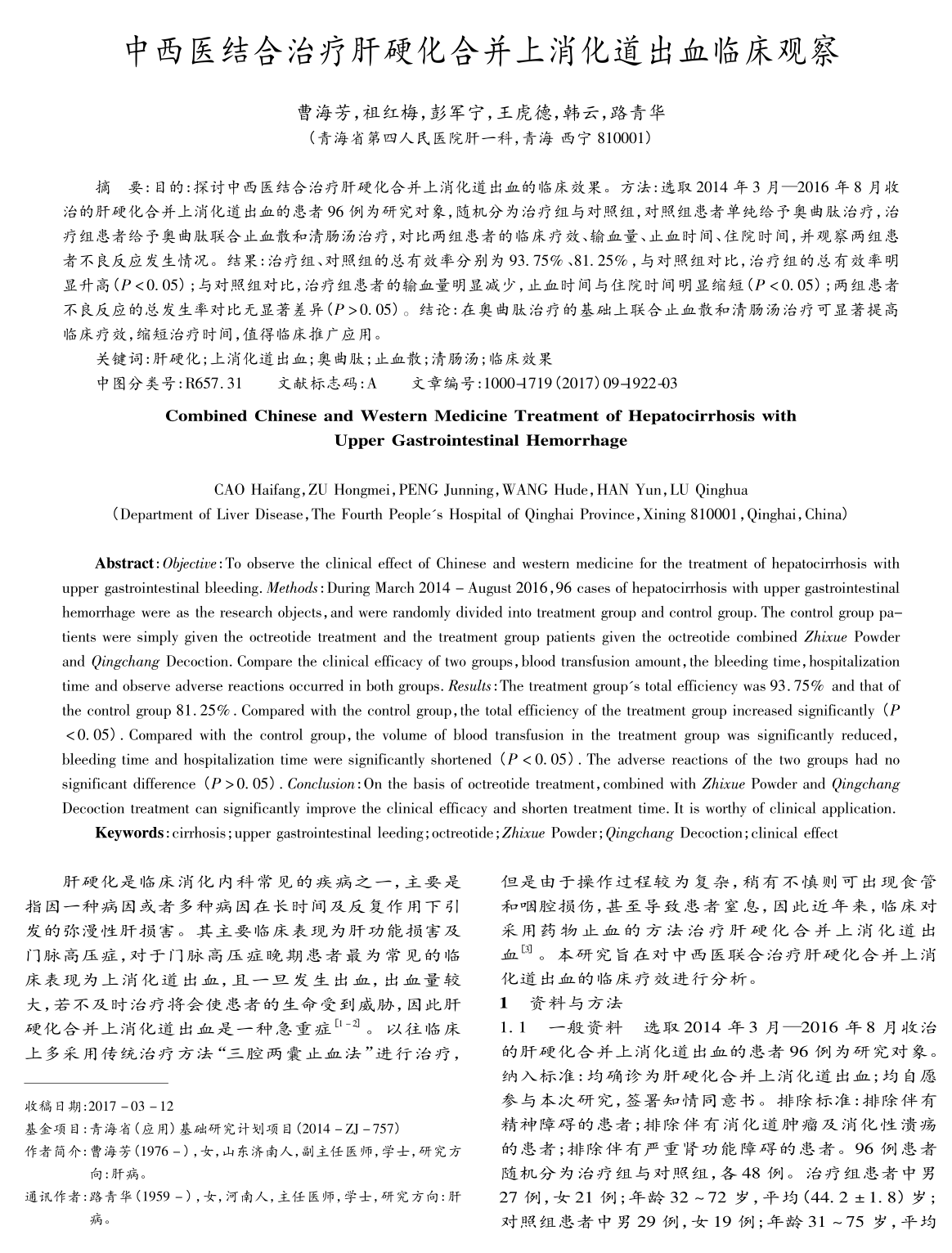 肝硬化消化道出血治疗新方法