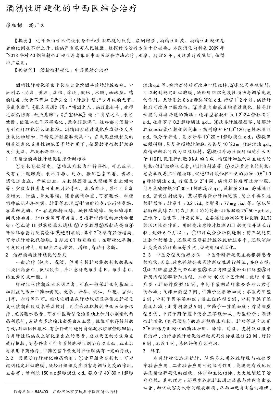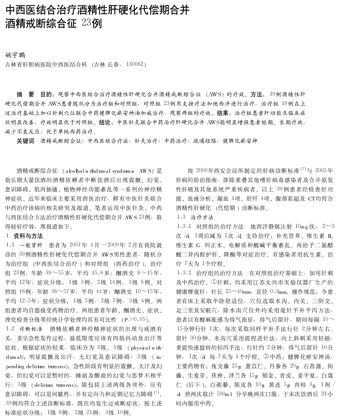 酒精性肝硬化新方法