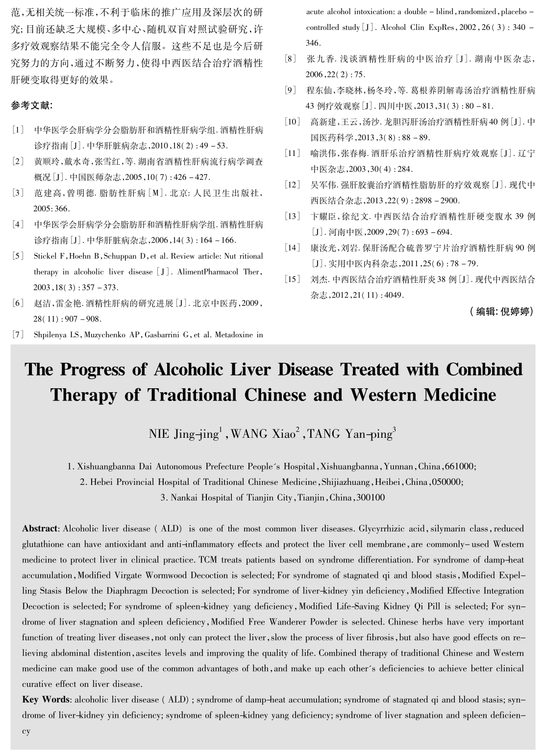 中医辩证给出了酒精肝的病因和治疗方法 不过对于中医师个人水平要求较高不具有普遍性